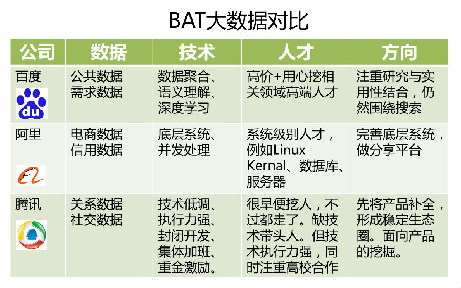 以下图文为罗超总结的三巨头大数据的优势与策略: