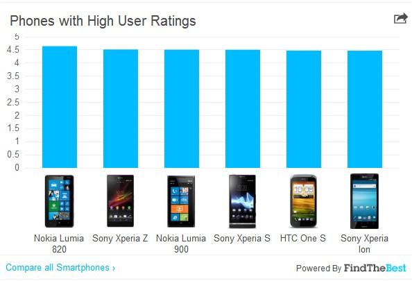 更重要的是,日常用户都很喜欢WindowsPhone的界面。就业界专家而言,iOS和Android总是在其评分排行上占据着靠前的位置;但如果看看用户评分最高的智能手机,那么就会发现WindowsPhone设备的表现要好得多。现在的问题就在于,是否会有更多的用户将购买Windows设备。