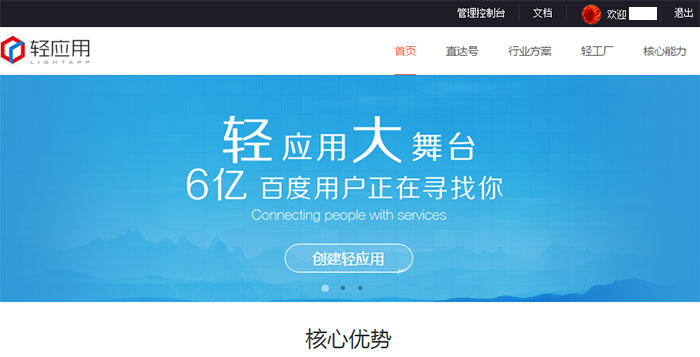 1.开发者信息认证后,打开百度轻应用平台 如下图,点击“马上开始”或“管理控制台—>轻应用管理”,进入管理控制台,创建您的轻应用。