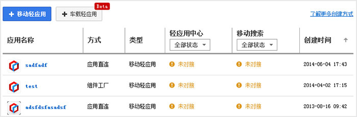 对接分为两次:轻应用中心对接和移动搜索对接。