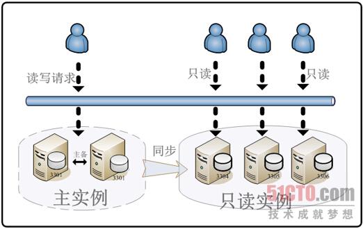 王义成告诉记者,RDS实例采用主备架构,RDS在支持只读实例后,只读实例将挂载在主节点上,实例的备节点以及只读实例均利用MySQL的原生复制同步主节点的增量数据。