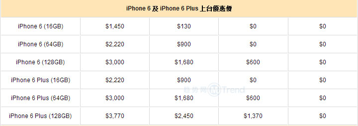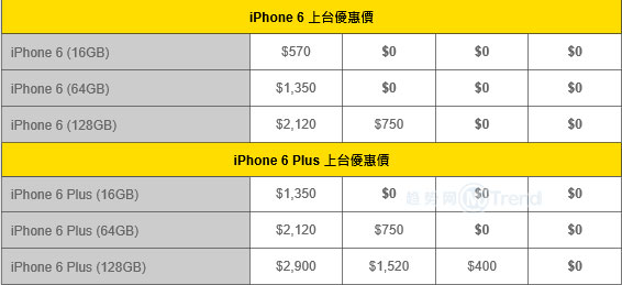 香港电讯1010也推出了iPhone6和iPhone6 Plus的合约计划,套餐资费分为357港元、467港元、557港元、697港元四档。iPhone6 16GB和64GB、iPhone6 Plus 16GB,在后三档套餐中均属于0元购机,iPhone6 128GB版本和iPhone6 Plus 64GB在后两档属于0元购机,iPhone6 Plus 128GB只有697港元档属于0元购机。