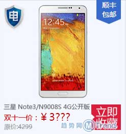 Galaxy Note3现在售价3500元左右,有商家已经预告,在双11当天还会降价。若使用天猫分期,每月最低只需400元左右。