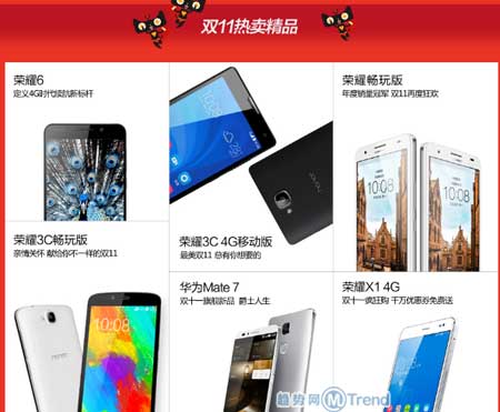 双11期间,华为Mate7和华为荣耀系列手机都将参与热卖活动。