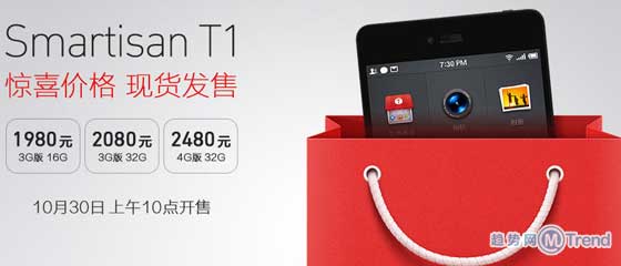 锤子科技官方宣布,从10月30日上午10点起,锤子Smartisan T1 手机将降价: