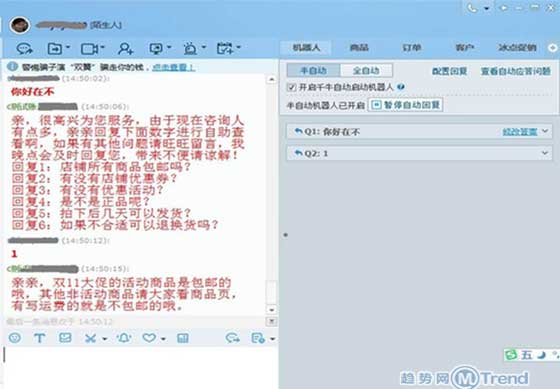 趋势网(微博|微信)讯:双11双12圣诞购物季等购物狂欢期间,淘宝天猫卖家客服日夜奋战都未必能满足买家的咨询需求,而且买家问题中30%是重复的,那么问题来了,如何提高工作效率,既能为更多买家服务又能减少客服回复成本呢?机器人小T支招客服小助手教你玩转双十一。