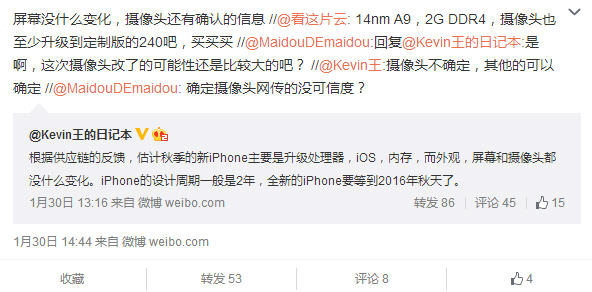 iSuppli Corp.中国研究总监@Kevin王的日记本于今日中午发表博文称:根据供应链的反馈,估计秋季的新iPhone主要是升级处理器,iOS,内存,而外观,屏幕和摄像头都没什么变化。iPhone的设计周期一般是2年,全新的iPhone要等到2016年秋天了。