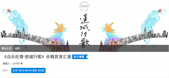 趋势网(微博|微信)讯:3月19日,一张名为《众乐纪壹·迷城行歌》的城市民谣合辑在虾米音乐悄然上线。乐迷不仅可以通过虾米APP试听,还可以在乐童音乐众筹平台上下单,以七折的价格买到一张同主题汇演门票。