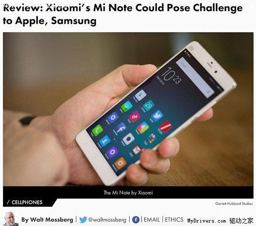 美国新锐科技媒体Re/code创始人沃尔特·莫斯伯格(Walt Mossberg)也被称为“莫博士”,是美国最富盛名的科技媒体人之一,他是苹果已故创始人史蒂夫·乔布斯、微软创始人比尔·盖茨、谷歌创始人拉里·佩 奇和谢尔盖·布林等科技领袖的长期挚友,他的专栏成为美国亿万消费者购买科技电子产品的权威指南。最近他对中国智能手机领先厂商小米的旗舰机型小米Note手机进行了评测,他认为小米Note是可以媲美苹果、三星高端机型的世界级产品,也代表着中国设计的崛起。以下是莫博士对小米Note评测文章全文: