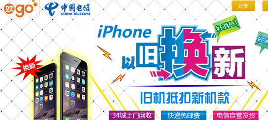 趋势网(微博|微信)讯:中国电信推二手iPhone换新手机的活动,折旧价格让人笑Cry。