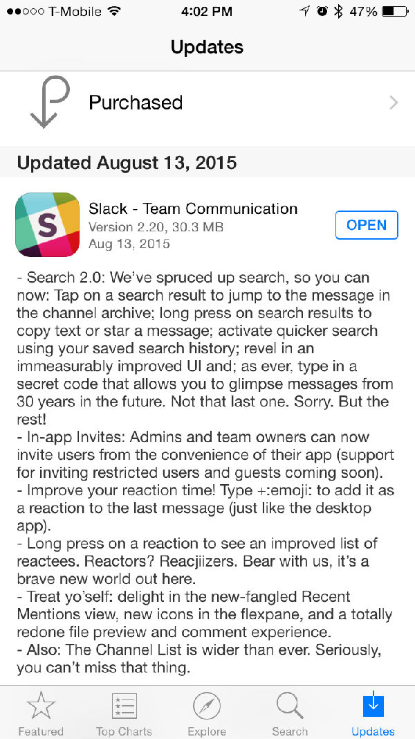 IOS的Slack已经更新,在增加了大量的新功能的同时修正了很多错误,这些修正的错误甚至超过了我们的原来的统计。其中,一个新的搜索功能可使您通过点击一个搜索结果,直接跳转到相应的消息,并且能使管理员通过应用程序邀请新用户。