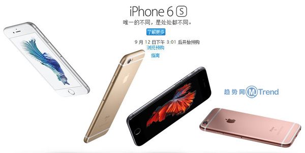 天猫苹果旗舰店iPhone6s预购入口://apple.tmall.com/。预购时间:9 月 12 日下午 3:01 后。