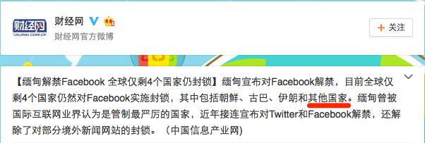 我估计会有读者问这篇文章中的其他国家是哪个国家。特别在这里解释一下,请看下面这条著名的微博。