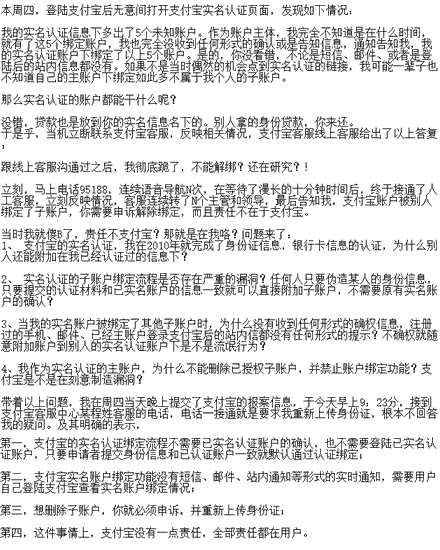 趋势网(微博|微信)讯:有网友称自己实名制账号下竟然莫名其妙被绑定了数个陌生子账号,这种情况下,支付宝不提供自主解绑功能,只能发起申诉或者找到对方让对方取消。那么,支付宝关联陌生子账号,怎么保护花呗借呗蚂蚁微贷资金安全?