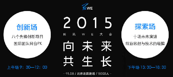 趋势网(微博|微信)讯:2015腾讯WE大会是由腾讯主办,活动家票务合作的跨界创新大会,邀请全球多位前沿科技领域思想家、创新者进行演讲分享。2015腾讯WE大会主题WE——为未来而来,发挥群体智能,协作创新。致力于探索和分享互联网和科技界最前沿的思想和技术,是中国连接世界的跨界创新平台。