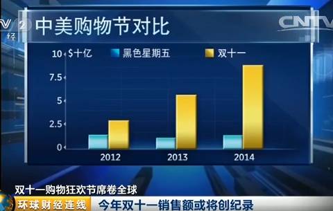 根据调研公司尼尔森的数据,接受问卷调查的56%的中国网购买家表示,预计将会比去年的双十一消费更多的金额。去年,阿里巴巴在这一天获得了93亿美元的销售额以及2.78亿次的交易量。而今年尼尔森预计,在参与双十一的购物人群中,每人的平均消费将达到1761元人民币,比去年攀升22%。也就是说,在双十一这短短24个小时之内,就将在阿里巴巴平台上创造上百亿美元的销售。这些数据,即使是美国年度的购物狂欢节“黑色星期五”或是随后的“网络星期一”,都可以说是望尘莫及。