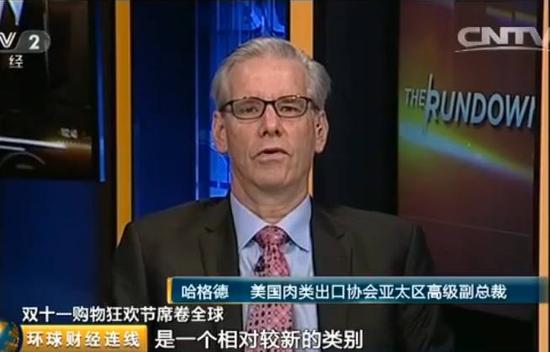 所以,这样的消费力也是吸引了众多海外品牌的垂涎。而阿里巴巴就表示,在今年,来自二十五个国家的大约五千个海外品牌也会参与到这场购物狂欢当中。接受尼尔森调查的每五名受访者中,就有三个中国顾客表示或将购买海外品牌。而尼尔森的分析师也表示,随着中国网购市场的成熟化,人们希望购买更高品质的产品,所以海外品牌通过中国电商而进入中国市场,这将成为一个发展趋势。今天,记者就采访了美国肉类出口协会,亚太区高级副总裁Joel Haggard,他表示,协会将与阿里巴巴旗下的天猫合作,借着双十一开始将高质量的美国猪肉出口到中国市场,希望开启作为中国买家们网购海外肉类的一个契机。
