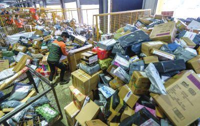受“双11”网购狂欢影响,大批快件涌入快递公司。从昨天开始,各大快递公司开启物流领域“春运”模式。京华时报记者在申通快递北京物流中心看到,邮往热门区域的快件大量堆积,但未出现“暴力摔件”。申通去年“快件潮”的最高峰值是一天订单3050万。根据今年的成交量,各大物流公司的订单将超过这个数字。此前,国家邮政局预计今年“双11”快件将超7.6亿件。