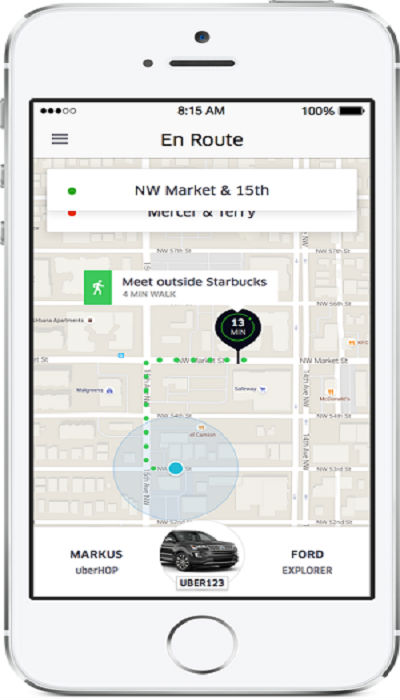 乘客也不能选择下车地点。和公车服务一样,UberHOP已有预定的下车地点,因此乘客下车后必须走一段路达到目的地。