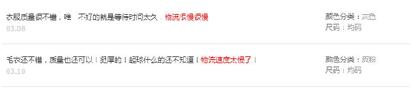第一,打开电商网购平台的用户评价,快递慢的问题是网购顾客差评中经常出现的一点。例如以下几个负 面评价。