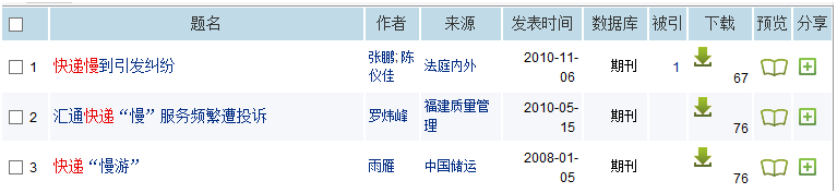 第二,在学术研究上,快递慢这一话题同样进入了学者研究的视野。例如中国知网上关于快递的相关研究: