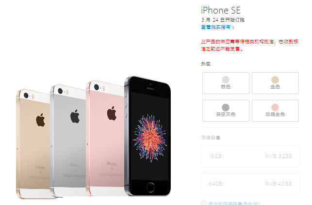 国行iPhoneSE价格:16GB 3288元人民币、64GB 4088元人民币。