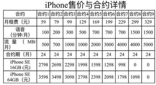 从曝光的电信iPhoneSE合约详情来看,月租最少达299元档,才是0元购机方案。