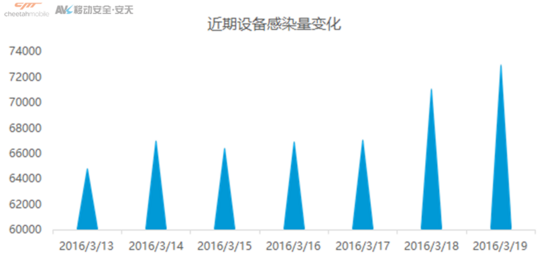 截止到目前,仅猎豹移动安全实验室与安天AVL移动安全团队监控到的该病毒样本量已达8万多个,累计感染全国超过7万的用户终端设备!