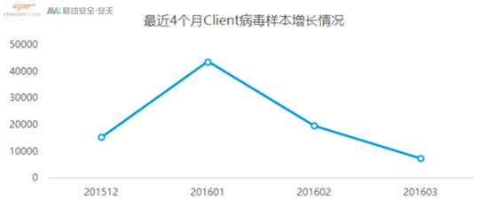趋势网(微博|微信)讯:恶意木马病毒横行,您的钱包还hold得住吗?猎豹移动安全实验室与安天AVL移动安全团队于2015年下半年,共同截获一款名为Client的木马病毒,并且对该病毒进行持续监测。通过进一步关注,发现该病毒在2016年1月呈爆发式增长,病毒样本量以及传播范围迅速扩大。