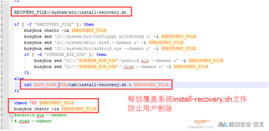 释放覆盖系统install-recovery.sh开机脚本,通过chattr +i指令防止删除