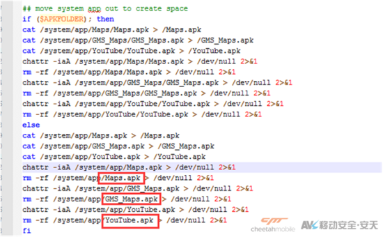 删除系统Maps、YouTube等应用,为病毒提供更多的系统空间。