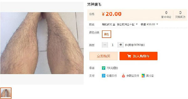 4、男神腿毛:男神腿毛20¥一根,货源有限,拔完无货,春节送礼,独自享用之佳品,你还在犹豫什么!小编我在犹豫有没有我男神许魏洲的腿毛卖,哈哈哈。