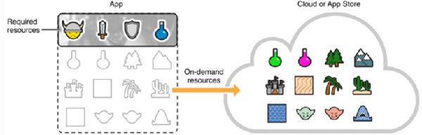ODR 随需应变资源是一项与苹果 iOS 9 系统同时发布的技术,只需下载一个小的核心应用并安装,其余的部分、内容由个人需要决定是否下载。ODR 目前大部分被应用在游戏领域,只需一名游戏用户下载初级游戏必要的装备(图像、视频等)。iOS 系统会随着用户的晋级,自动提供最新的下载,同时删除之前初级水平的装备来整合空间。
