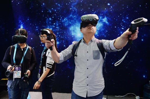 (一名用户在亚洲CES展会上体验虚拟现实)