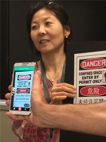 举例来说,写有“危险”这个词语的标志牌上,用下载了此APP的智能手机对文字部分进行扫描就可以看到对应的韩语翻译“위험한”。