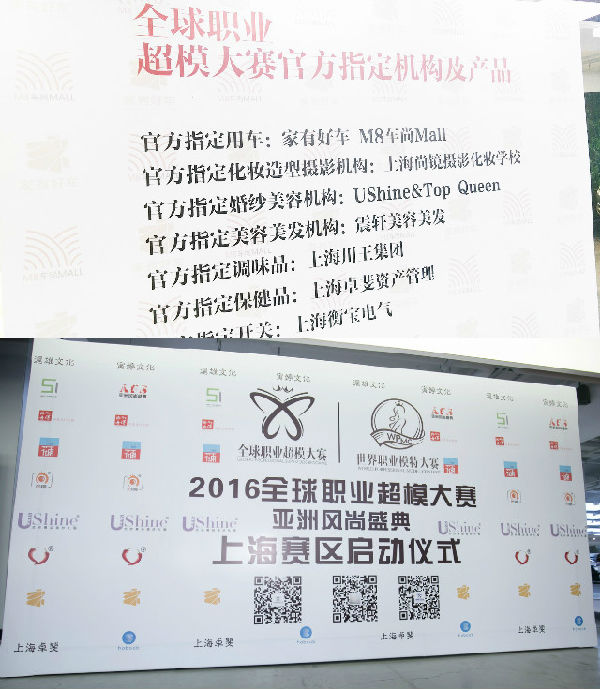 全球职业超模大赛上海赛区官方合作伙伴:上海M8车尚MALL、家有好车、上海尚镜摄影化妆学校、上海卓斐资产管理、上海衡宝电器、上海川王集团、上海震轩美容美发连锁、上海Ushine&Top Queen婚纱美容机构……