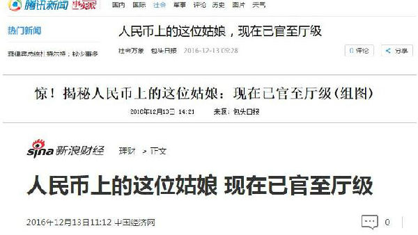 趋势网(微博|微信)讯:近日,有关“人民币上的这位姑娘,现在已官至厅级”的 新闻 在各家媒体热传,这位“贰角上的姑娘”再度成为社会关注的热点。