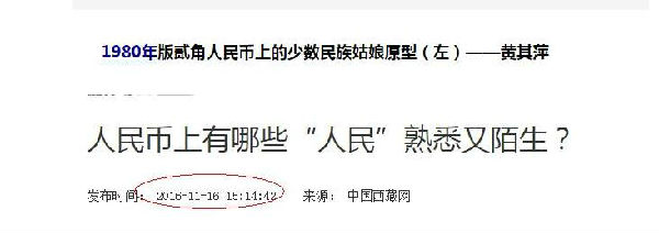 该文中称,“1980年版的贰角人民币上,两位美丽可爱的少数民族姑娘真有其人,画面左边的土家族姑娘是黄其萍。贰角人民币上的另一位姑娘是延边朝鲜族自治州的苏春熙。”