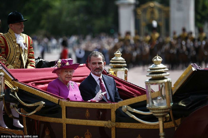 英女王坐着马车,来迎接这两位来自西班牙的贵客。
