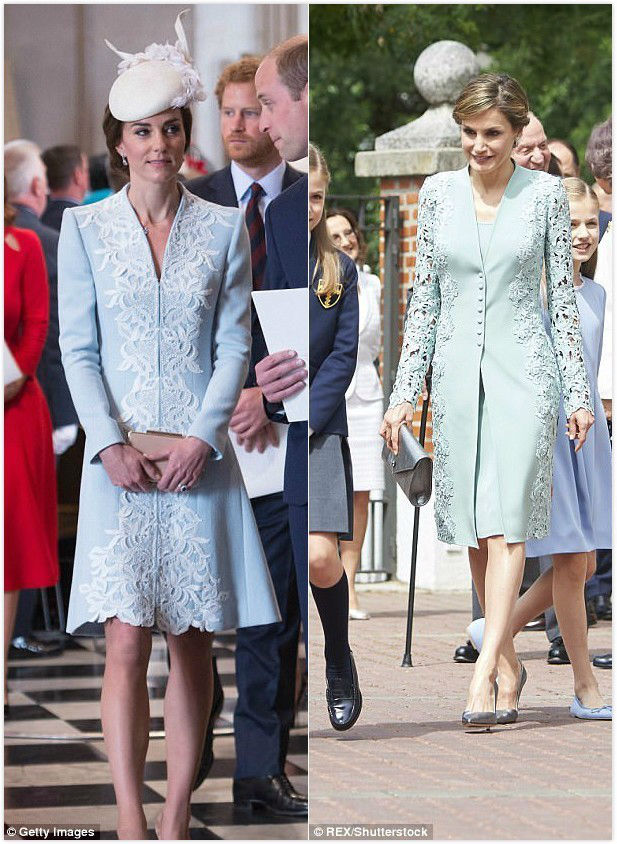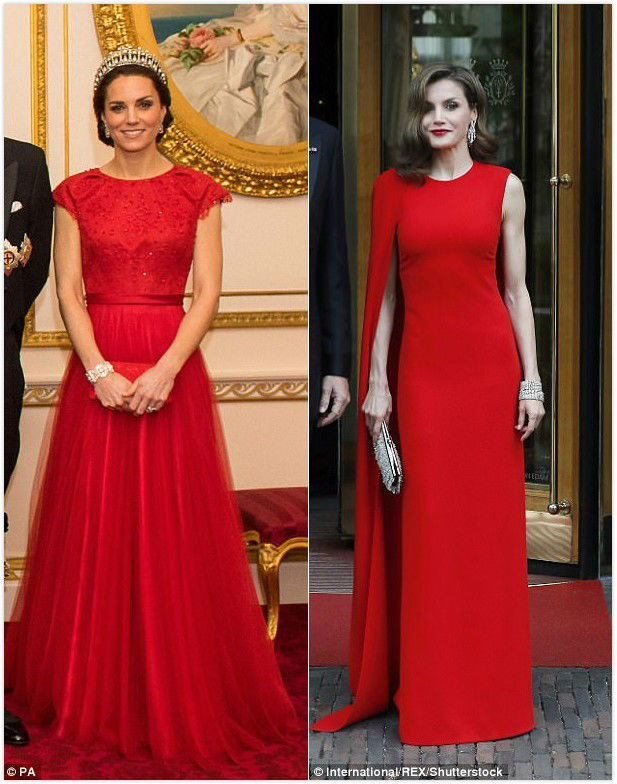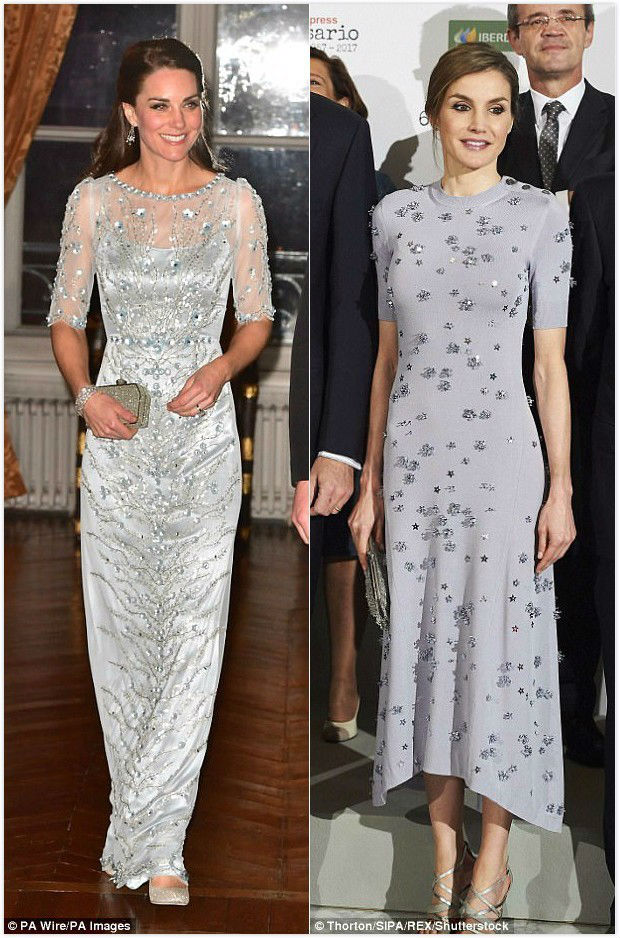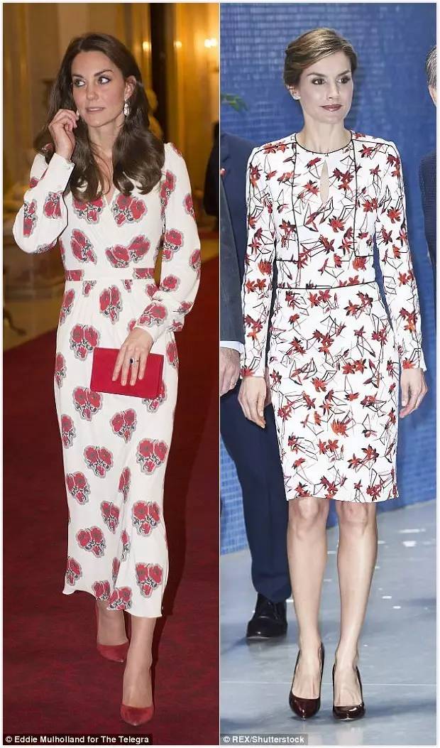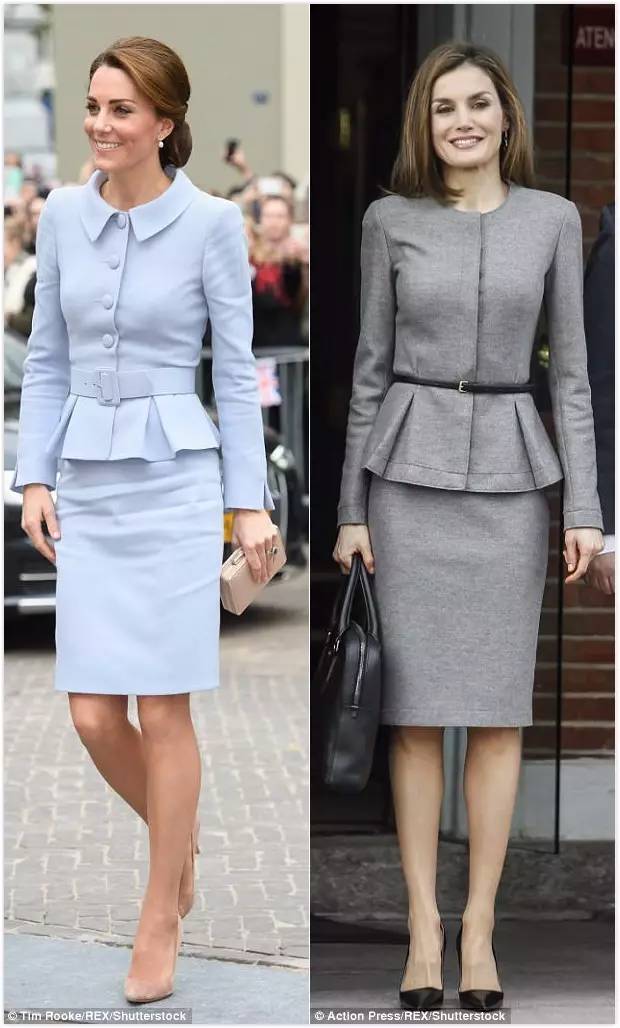 相似的背景,高挑的身材和姣好的样貌,媒体经常拿来西班牙王后和凯特王妃来做对比。