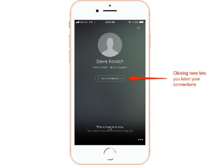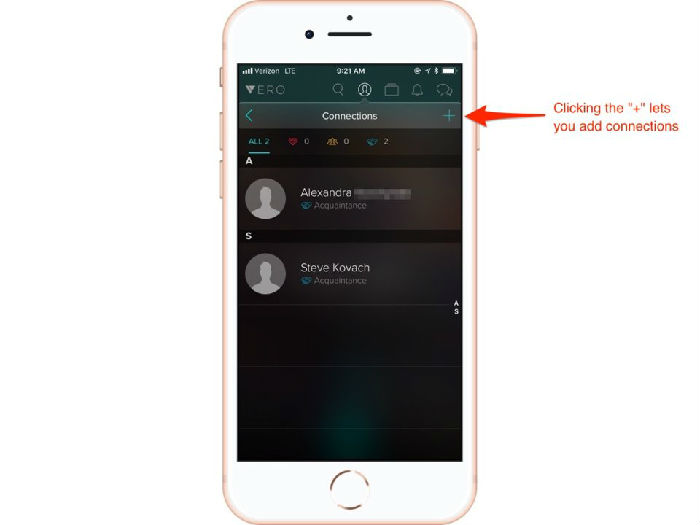 这里是Vero与其它社交网络开始区分开来的地方:当你接受朋友的请求或在Vero上建立一个新的连接时,你可以决定怎样将那些连接分类。