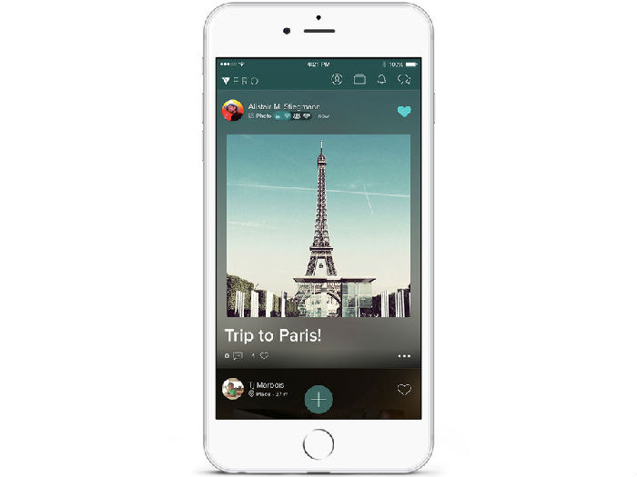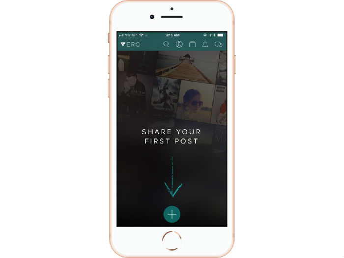 要分享帖子,点击屏幕左上角的“Vero”按钮,你就会回到你的信息流中去,然后点击屏幕底部的“+”按钮。