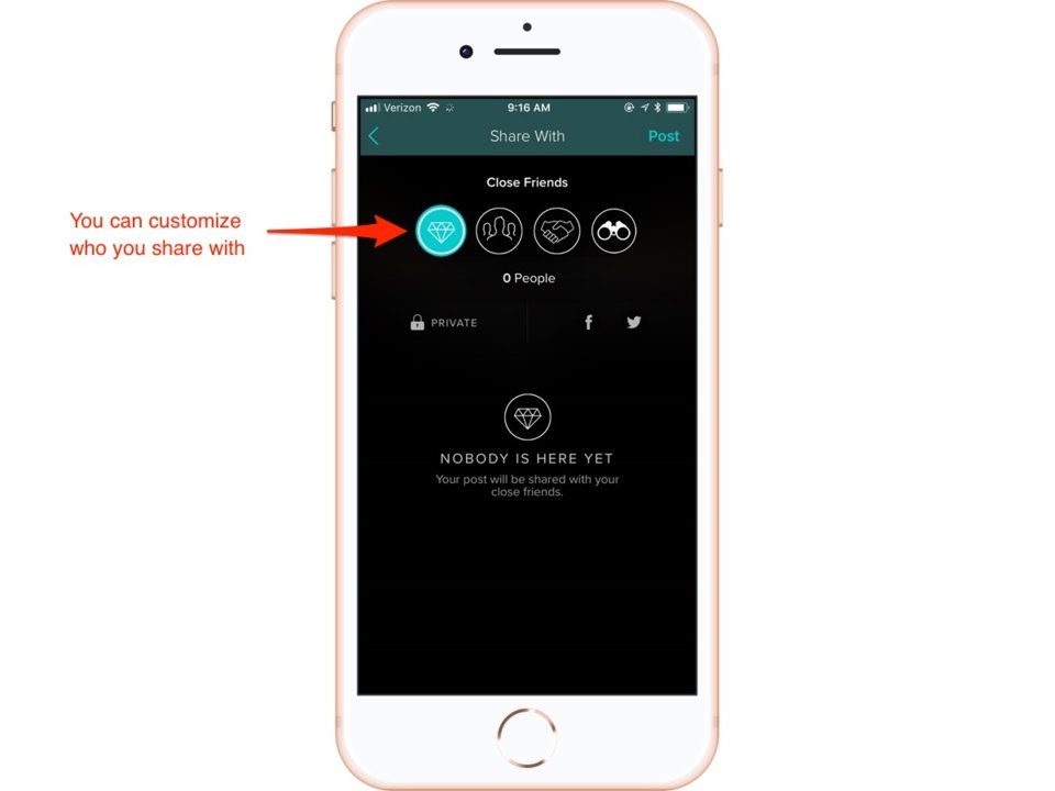 Vero的帖子可以是完全私密、完全公开或与所选择的朋友分享。