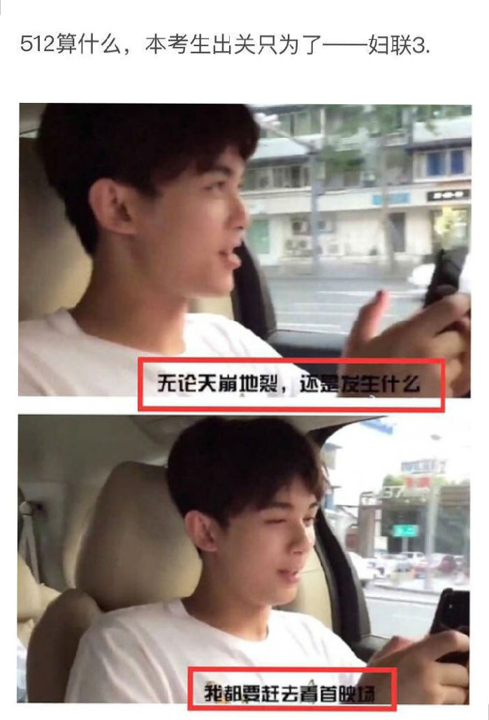 这一下,广大网友可算是炸了锅了,一个在5.11号心心念念去看漫威《复仇者联盟三》首映的高三学子吴磊,怎么可能在12号的时候又去紧张备考了呢?事件因此一发不可收拾,广大网友纷纷要求吴磊本人出来道歉,甚至上升到了吴磊本人极不爱国层面,称一个四川人,怎么能忘记08年汶川的那段惨痛过去!