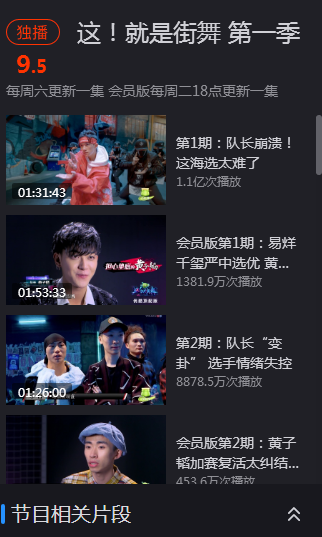 虽然是优酷的《这!就是街舞》先播,但是爱奇艺的《热血街舞团》更吸引观众,《热血街舞团》首播播放量就是2.3亿,比《这!就是街舞》首播多出1亿多的播放量,如下图: