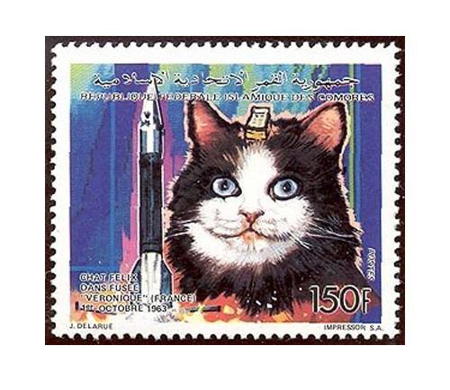 1963年10月18日,一只名为菲利克斯的小猫搭乘法国宇航局的“弗农电子”火箭进入太空。人们为了纪念菲利克斯,把它的头像印在科摩罗政府1992年发行的邮票上。
