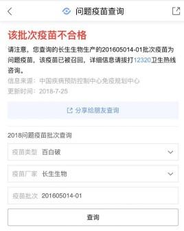 目前百度搜索问题疫苗查询工具仅支持此次官方披露的两批次问题疫苗的召回信息显示。百度官方称目前技术人员正在加急扩充数据库,之后将逐步新增往年曾经披露过的问题疫苗信息。