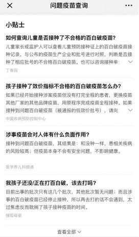 此外,腾讯方面还表示,本周内“腾讯安心计划”还将开通疫苗共享预警通道,为同批次问题疫苗注射用户提供查询和提醒功能。