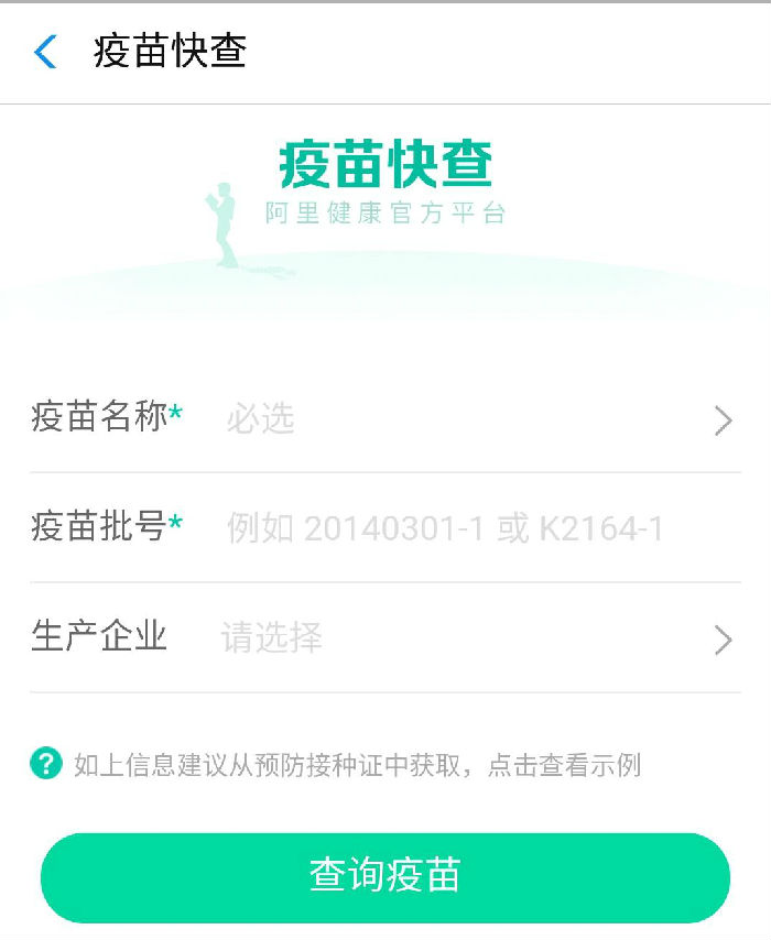 淘宝、支付宝中阿里健康提供的问题疫苗快速查询界面