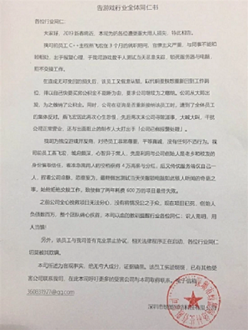 一篇《告游戏行业全体同仁书》在游戏业界广为流传,下面展示给大家看看——